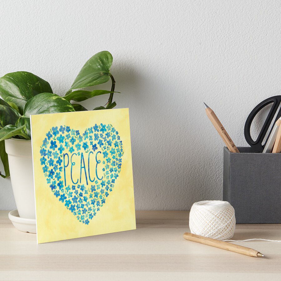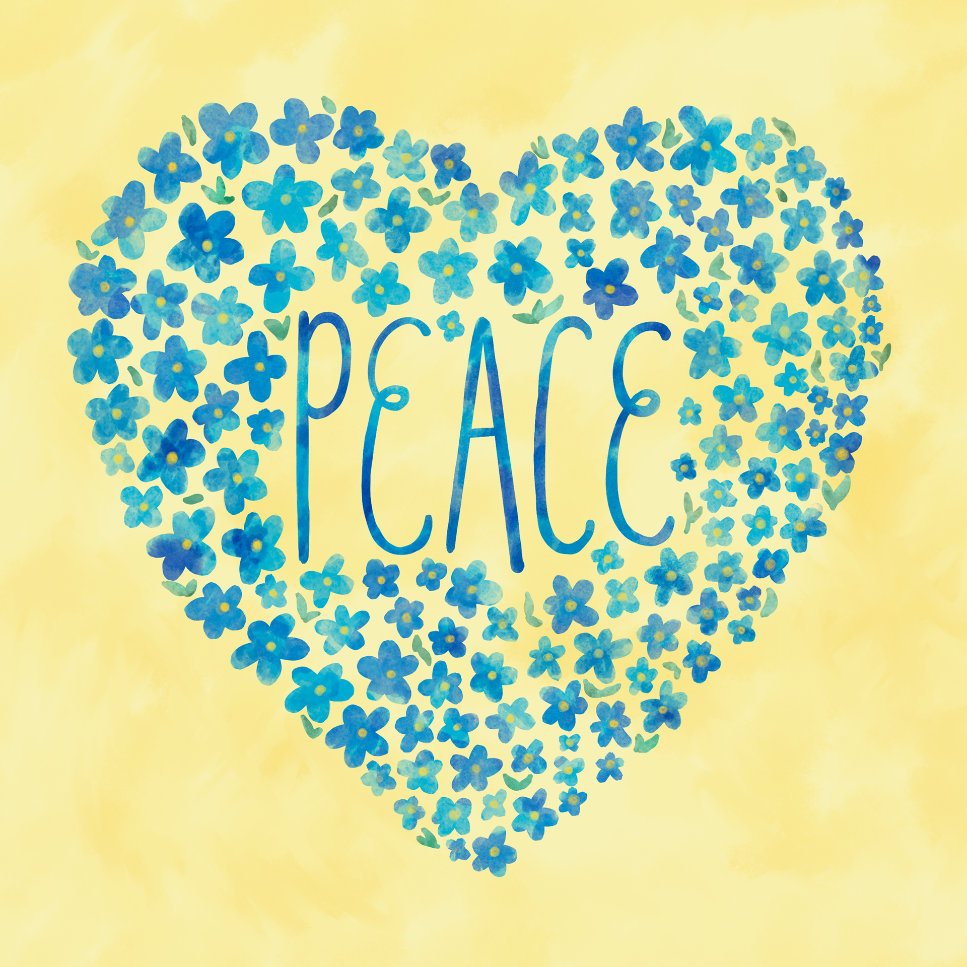 Ukraine Peace Heart artwork with blue and yellow forget-me-not flowers